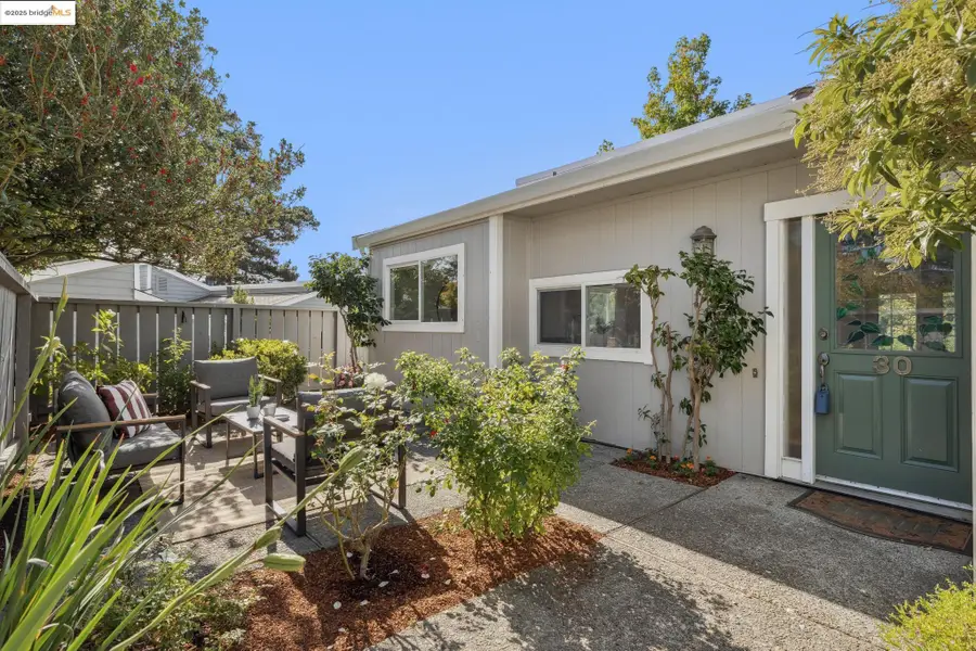 Welcome to 30 Ascot Place, an updated three bedroom, two bathroom townhouse on the sweetest cul-de-sac in Moraga Highlands. The spacious living room has soaring ceilings and french doors to the patio. The oversized primary bedroom has a sleek, custom en suite bathroom. Home office or third bedroom? You decide. The front patio is fully enclosed, and includes a sweet secret garden and a lockable tool closet. The double garage has shelving for storage. The back patio is spectacular, with views for days. The community pool is right across the street. You'll feel like you're living in the country, while being just minutes from all the shopping and services of Rheem and Moraga. Don’t miss this special home. Close to everything and above it all!