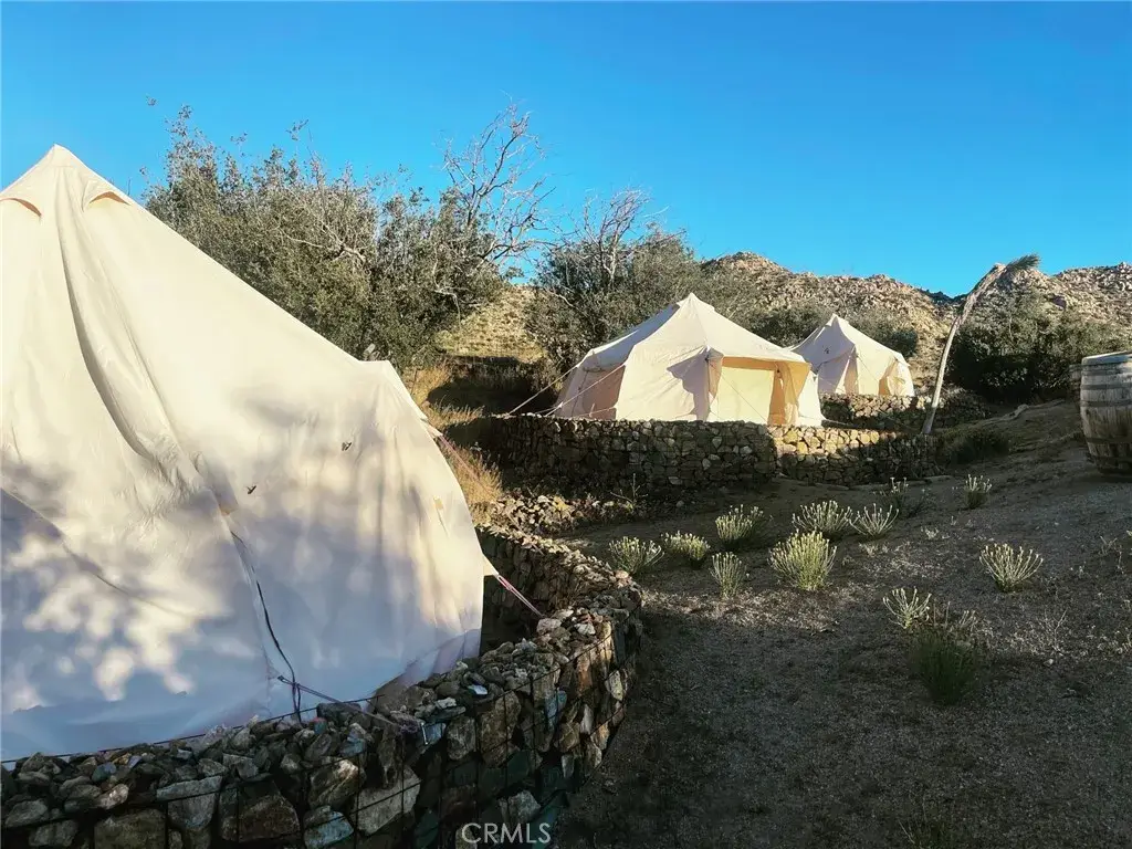 2.5 Acres in Historic Pioneertown Minutes from Mane Street Discover a rare 2.5-acre parcel in iconic Pioneertown, just a five-minutes from historic Mane Street and world-famous Pappy & Harriets. This special property offers a blend of buildready infrastructure, cultural history, and desert beauty, making it the ideal setting for your modern ranch, architectural high desert retreat, or creative sanctuary. Set at 4,200 snowlevel elevation, the lot is privately accessed by a dead-end road with no through traffic. Land is graded with a gentle downslope to Chapparrosa Wash. A private water well site plus 7,500-gallon storage tank is already in place, giving your build a head start. Utilities are nearby, including fiber internet, power, and abundant solar potential. The property features stonework hardscaping, native plants, and ancient California scrub oaks, alongside yuccas, cacti, pomegranate trees, and wildflowering shrubs that bring seasonal color. A ceremonial kiva fire circle designed for gatherings, drum circles, and celestial alignment sits alongside a sunken medicine wheel fire pit surrounded by an olive grove, creating spaces for connection and reflection. There are 12 semi-subterranean stone sleeping circles (20 diameter each), offering a truly unique landscape feature. Practical features include surveyors corner markers, wire mesh fencing, and a floodwater berm on the upslope for natural land protection. The parcel is bordered by panoramic protected BLM Conservational Land, with views of the Sawtooth Mountains, Black Hill, Black Mountain, San Gorgonio Wilderness,