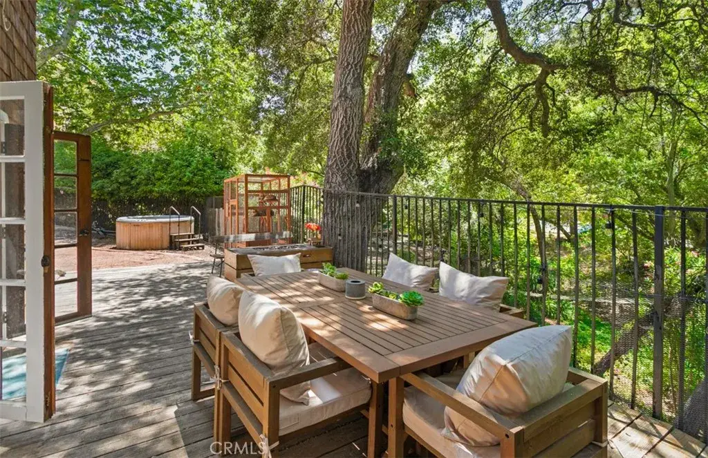 Tucked away at the end of a private cul-de-sac in the idyllic community of Silverado Canyon, this hidden gem offers a rare blend of rustic charm and contemporary comfort. Set beside a tranquil creek and framed by lush canyon foliage, the home provides a peaceful escape where birdsong and the gentle trickle of water set the tone for everyday living. This thoughtfully updated three-bedroom, two-bathroom home is a haven of peace and privacy. Step into a light-filled kitchen complete with matching GE Café appliances, a picturesque garden window, and views that invite the outdoors in. The open-concept living area exudes warmth and character, featuring exposed wood beams, a charming wood-burning stove, and a wall of French doors that lead to your expansive creekside patio, an ideal space for alfresco dining, entertaining, or evening wine under the stars. The main floor offers a private bedroom with its own climate control via a mini-split heat/cooling system and easy access to a full guest bath. Upstairs, the spacious primary suite opens to a generous balcony perfect for sunrise coffee or stargazing. Also equipped with its own mini-split heat/cooling system. A third bedroom with a walk-in closet and picture windows welcomes abundant natural light. The beautifully remodeled ¾ bath showcases a walk-in subway-tiled shower, brass hardware, and a modern vanity to provide elevated daily living. Throughout the home, updated wide-plank laminate flooring enhances the warm, organic aesthetic, while the wrap-around patios and Nordic hot tub outside invite you to soak in the beauty of your surroundings. Located in the heart of Silverado Canyon, a beloved, close-knit community known for its scenic trails, equestrian lifestyle, community gardens, and seasonal events. This property offers the best of both worlds: tranquil canyon living just 20 minutes from Tustin’s District Shopping Center, major toll roads, and everyday essentials like Costco and Target. If you've been longing for a private, nature-infused sanctuary with curated style and modern upgrades, this is the one.