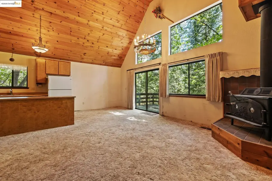Peace, Privacy, and a Stream to Call Your Own Tucked down a private drive on a double lot, this Cedar Ridge Ranches cabin offers peaceful living with a rare bonus—your backyard opens directly to the Tuolumne Ditch and Trail, a year-round stream and walking path beloved by locals. The .84-acre property feels like a natural park, with gentle land, a gazebo for quiet lunches or coffee breaks, and both front and back decks for soaking up the serene setting. Inside, the great room features a wood-burning stove, cozy carpeted living/dining area, and slider to the back deck. The kitchen is simple and functional with linoleum flooring. Two bedrooms and a full bath with tub/shower combo complete the main level, while the loft above serves as a third sleeping space, bunk room, or play zone—with a convenient half bath nearby. A breezeway connects the home to a 2-car garage, and Cedar Ridge Ranches offers optional membership to Dogwood Lake with picnic areas, beach access, volleyball, and more.