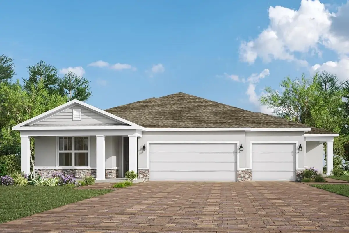 Ready in March 2026! The Aspen Multi-Generational Home offers a smart, versatile layout designed for today’s modern families. This thoughtfully crafted one-story design features 4 spacious bedrooms, 3.5 bathrooms, a dedicated study, and a 3-car garage—all set on an expansive 75-foot-wide oversized homesite. Blending everyday comfort with multi-generational flexibility, this home is ideal for families who want to live together while maintaining privacy and independence. The private multi-generational suite includes its own separate entrance and covered porch, a living room with mini-kitchen, a private bedroom with en-suite bath, and a layout that allows true independence while staying connected to the main home—perfect for a parent, college student, or long-term guest. From the welcoming covered front porch, step through the 8-foot front door into a bright, open interior with 9'4" ceilings and tray ceilings accenting the great room and hallway for added elegance. The Aspen’s split-bedroom floor plan ensures ideal privacy, with a study at the front of the home and bedrooms positioned for both connection and quiet. At the heart of the home, the chef-inspired gourmet kitchen seamlessly flows into the dining area and great room, creating the perfect space for gatherings. The kitchen is equipped with 42" upper cabinets, stainless steel appliances including a gas cooktop and built-in wall oven, expansive quartz countertops, a large island with seating, a walk-in pantry, and thoughtful touches like a pull-out trash drawer. Step outside to a covered lanai with an outdoor kitchen rough-in, ready to be transformed into your private outdoor retreat—perfect for entertaining or relaxing year-round. As a homeowner in Eden Crest, you'll also enjoy resort-style amenities including a zero-entry pool, private cabana with grills, a playground with swings, a dog park, and scenic walking trails—all designed to elevate everyday living. DISCLAIMER: Photos and/or drawings of homes may show stock photos and upgraded landscaping, elevations, and optional features that may not represent the lowest-priced homes in the community. Pricing, Incentives and Promotions are subject to change at anytime. Promotions cannot be combined with any other offer. Ask the Sales and Marketing Representative for details on promotions.