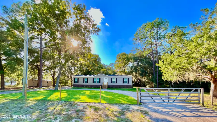 Beautiful brand new 4 bedroom 2 bath 1560 Square foot mobile home on 1 acre. This home is located just minutes south of State Road 20 for an easy commute to Gainesville or Palatka. Schools and shopping are 5 minutes away. Open floor plan perfect for entertaining. Black Amana appliances. Custom cabinets and beautiful tile back splash in kitchen and custom base molding in living areas. Large master bedroom with huge walk in closet. Large bedrooms with big closets perfect for kids, guests and an office. New Zoysia sod. New circular crushed roadbed driveway. Parking pad and 12X24 Storage shed. This home has never been occupied and has a new well . Xfinity cable connected .There is a separate well head on property. This is a beautiful home nestled on a private lot fully fenced with plenty of room in the yard for a swimming pool or pole barn/garage for your toys. Furniture conveys with full price offer.