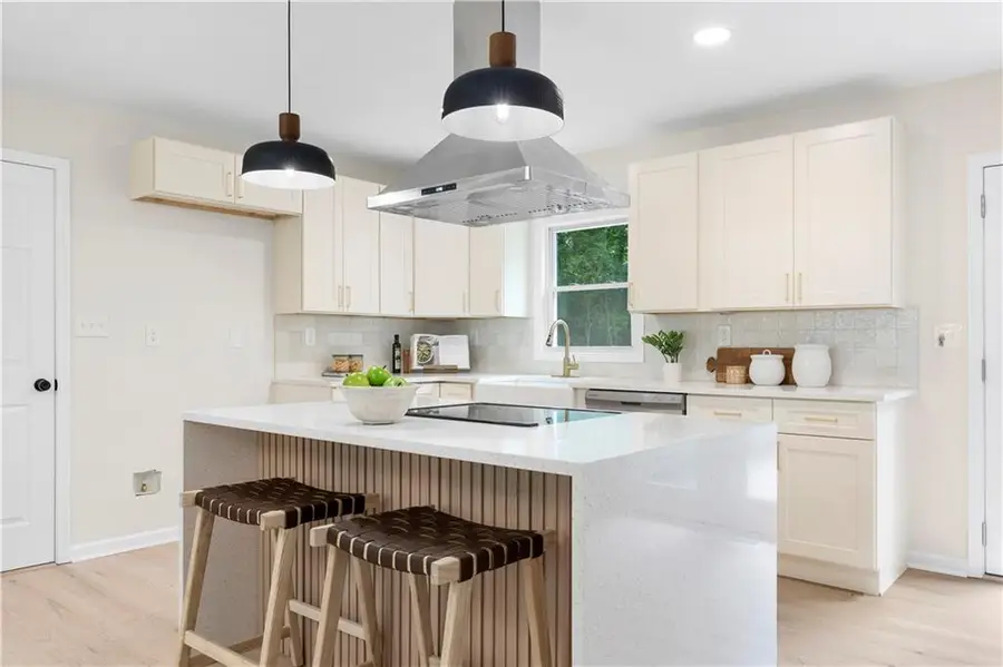 Discover this beautifully renovated ranch in the highly sought-after Smyrna area! This charming home has been meticulously updated, boasting a new roof, windows, HVAC system, and siding. Step through the front door into an inviting open-concept living space that seamlessly integrates the living room, dining area, and kitchen. The updated kitchen is a chef’s dream, featuring new cabinets, quartz countertops, stainless steel appliances, and a stunning kitchen island with a range, stainless steel hood, and an eat-in counter. A thoughtfully designed addition enhances the home, creating a brand-new primary suite. This spacious bedroom offers a serene retreat, while the en-suite bathroom boasts a double vanity, standalone shower, and all-new fixtures. Conveniently located near Interstate 285, this home offers easy access to downtown Smyrna, Vinings, and The Battery Atlanta, with downtown Atlanta just a 20-minute drive away. Don’t miss out on this ideal ranch home that combines modern amenities with an unbeatable location! **FHA Eligible**