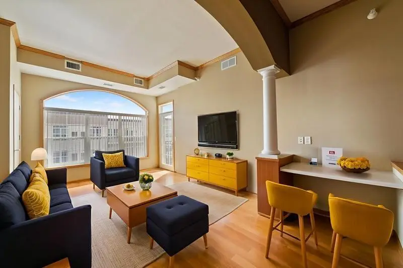This 4th floor condo is bright with a giant transom window in the living room and extra ceiling height.