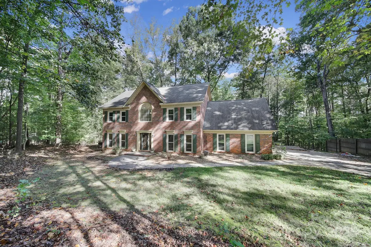 Tucked within the sought-after Stone Mountain section of Farmwood North, this hidden gem offers a rare combination of privacy, character, and convenience. Set on a large wooded cul-de-sac lot with no mandatory HOA, this full-brick home offers timeless appeal and thoughtful upgrades. A two-story foyer welcomes you with a view toward the upstairs French doors leading to a versatile bedroom or office. The open kitchen features granite countertops, a bay-window breakfast area, and updated fixtures and finishes. Beautiful hardwood floors were added in 2020, and the entire home has just been freshly painted. Bathrooms and kitchen elements have been upgraded, and the custom-designed fireplace serves as a stunning focal point. Modern touches include all-new light fixtures, recessed lighting in most rooms, and added lighting in closets for extra functionality. Additional highlights include newer windows (2015), a tankless water heater, and a generator plug conveniently installed in the garage. Enjoy peaceful mornings or relaxing evenings on the screened porch that feels like a mountain retreat, surrounded by trees and the serenity of nature. Blending classic craftsmanship with modern comfort, this North Charlotte home offers the perfect escape while remaining just minutes from shopping, dining, and commuter routes.
