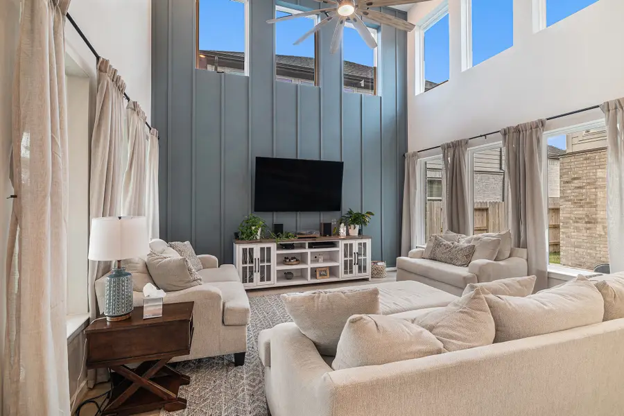 Welcome to this beautifully appointed Cypress home offering comfort, style, and space throughout. The large living room features soaring ceilings and a striking accent wall, creating a bright and open feel. The kitchen includes a center island, breakfast bar, and spacious corner pantry, flowing seamlessly into the dining area—ideal for daily living or hosting guests. The primary suite on the main floor features dual sinks, an oversized walk-in shower, and a generous walk-in closet.
