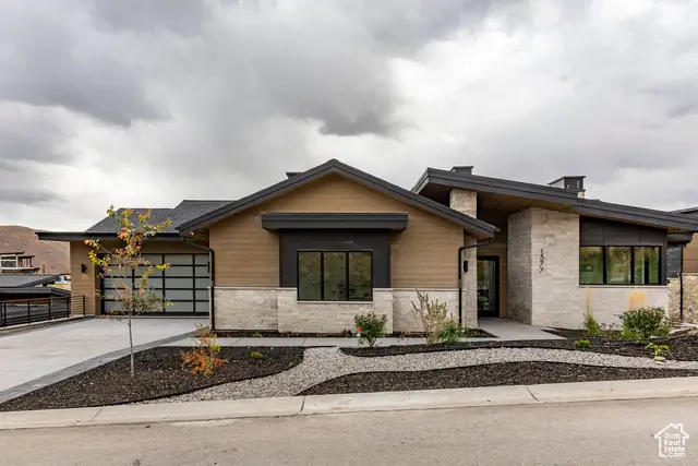 Introducing Haus 1577, a prestigious new-construction estate occupying one of the most coveted, crown jewel lots in the entire SkyRidge community. Offering breathtaking panoramic views of Jordanelle Reservoir and Deer Valley Resort's scenic mountains, the setting is nothing short of spectacular. Backing the 8th hole of the golf course, this mountain modern masterpiece is perfectly positioned for year-round living and is move-in ready for you now. Designed for effortless entertaining and gracious living, the open-concept main level features a gourmet kitchen with Sub-Zero and Wolf appliances, a spacious great room, and seamless access to nearly 1,600 square feet of outdoor living space-including a heated upper deck and a lower patio with a drop-down hot tub. The home offers easy main-level living with two primary suites thoughtfully positioned on either side of the kitchen and family room, while integrated Control4 smart home automation ensures modern convenience and comfort at every turn. The lower terrace level is tailored for entertainment, featuring a theater room, game room, exercise room, wet bar, and additional gathering spaces. SkyRidge residents enjoy exclusive amenities such as a golf course, clubhouse with pools, fitness studio, equestrian center, bar, caf, and an on-demand shuttle to the Deer Valley Gondola. Just minutes away, the new Deer Valley East Village offers world-class skiing, fine dining, shopping, entertainment, and endless outdoor recreation. This is a rare opportunity to secure the premier home and lot in SkyRidge, complete with stunning views and an unmatched lifestyle.